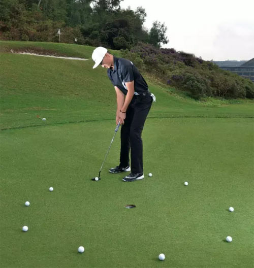 业余球员喜欢去挥杆练习场猛轰1号木, 却往往忽略了果岭上的练习。想打出低杆数,你必须把更多的时间花费在推杆果岭而不是练习场。在职业球员的练习中,推杆占的比重往往超过任何其他球杆。下面,欧巡沃尔沃中国公开赛冠军李昊桐将分享他在果岭上的练习方法。