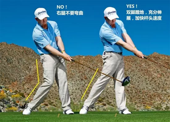 当你试图加大挥杆力量时 双脚蹬地可带来远距
