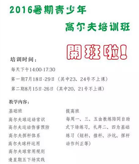 2000元/人 汕头海湾高尔夫2016暑期青少年培训班