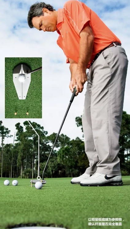 下面这个简单的训练法将会帮助你完善推击,提高你使球沿正确路线开始滚动的能力。你只需要两个球座、练习果岭上的一块平坦区域、两三个球和一个足够平直的三角形框架板,后者可以在当地DIY商店里买到。
