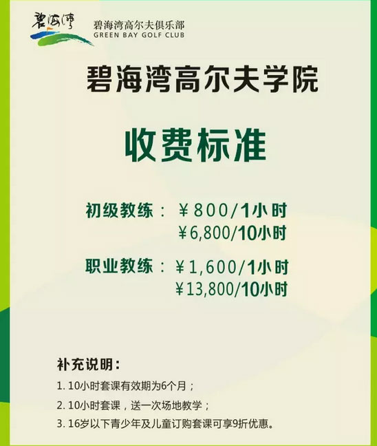 深圳碧海湾高尔夫学院 收费标准