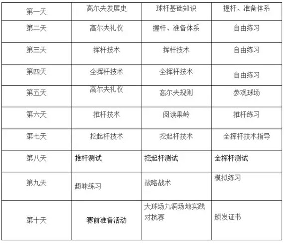 招生对象与名额:年龄6-18岁,身体健康,热爱高尔夫的青少年,共两期每期招生20名,以报名先后录取,额满为止。