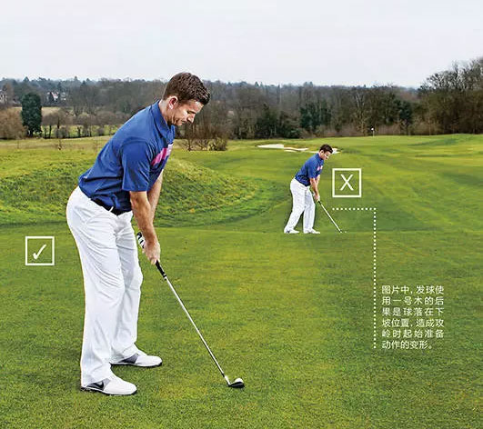 第二,平坦的球位能够让球手更好地控制飞行弹道。球位于何种坡度能够指明球的飞行方向,例如,球位于高于双脚的位置会从右至左飞行;而处于下坡时,球的飞行高度会很低。