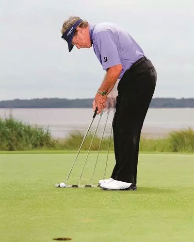 就像眼睛是心灵之窗,推杆时正确定位则是胜利之门。击球会反应出定位时的状态。如果定位得当,你的推杆就会自然流畅;定位不得当,你将会一直挣扎。从定位得当与否就可以判断一位球员推杆好坏。每位球员的推杆都可以像职业球员一样优秀,因为推杆对身体条件要求极小。你不需要十分强壮或敏捷,你只需要有一个好的定位。下面我将教你如何成为一名优秀推杆手。