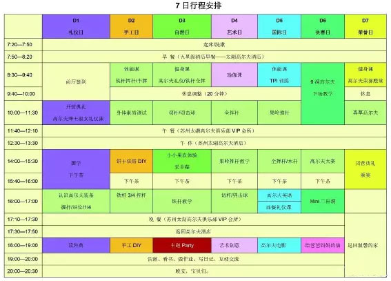 高尔夫冬令营课程安排