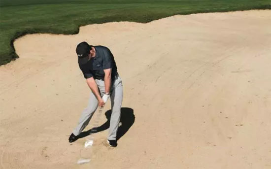 说出如何在球道沙坑中打出一记干净的向下击球很简单,但应该如何练习?试试下面这个简单的方法。