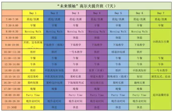 【费用包含】:住宿、早中晚三餐、教练教学费、生活老师服务、球俱提供、下场费、服装、保险、纪念相册、奖状及奖品。