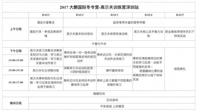 5800元/人 2017年大鹏国际“高尔夫”冬令营