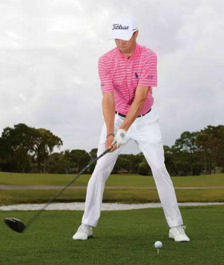 当我的击球不那么扎实时,通常是因为上杆时身体向右侧平移,这是因为我的脚没有在地上扎稳的缘故。你需要让下半身在上杆时像磐石一样稳定,这样才能让上半身在拧动的时候获得足够扭力,以便为下杆储存能量。