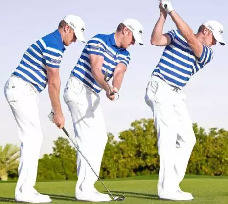 过多地在理想挥杆平面下面下杆,以至于杆头过分地由目标线内侧击球,并产生小左曲或者左曲的旋转。小左曲会增加距离并将小球送向目标的左侧,这个组合对于铁杆来说是没有任何好处的,因为我们希望获得的是准确性、恰到好处的距离控制和轻柔的落地。延迟是一种不鼓励双手翻转杆面的技术,以此来获得柔和小右曲,小右曲的飞行弹道更容易控制,落地更轻柔,停球速度更快。