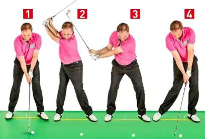 挥杆过程中身体重心的转移与人体扔东西时身体的本能反应是一样的。尝试扔一支旧球杆或足球,体会身体重心有效的转移到身体前侧的感觉。