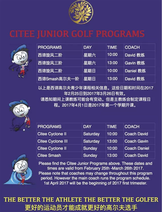 北京西谛高尔夫学院2017年青少年课程2月-3月计划