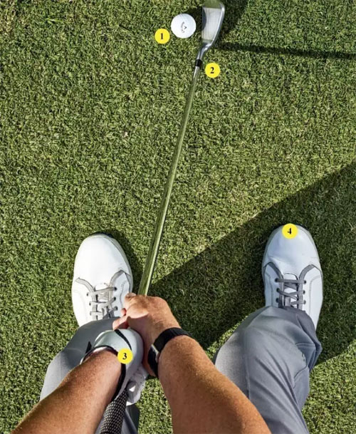 你的球离果岭还有80码,球位完美。正是直攻洞旗的好时机。然后你却用沙坑杆打出一记冲天球,结果球重重落下!——离果岭仍很远。为什么?很可能是因为你的挖起杆击球太高,而职业球员此时会打出“球路”更低并带有适量球旋的击球,使球落地后有跳一下再停的动作。你也可以做到,需要的只是对预备动作的调整。复制这些姿势——然后完成精准击球!