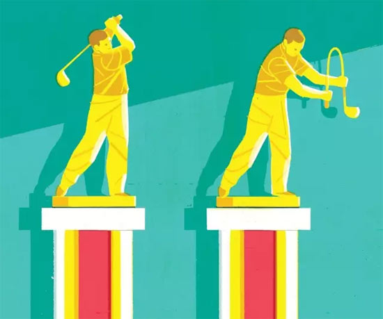 在美巡赛中有一个数据统计叫作:反弹状态。这一数据体现球员们如何在前一洞打出坏球之后迅速找回状态。但业余球员却恰恰朝着相反的方向进行反弹,如果他们捉下小鸟或在艰难的一洞安全保帕后,却经常在下一洞遭遇灾难。