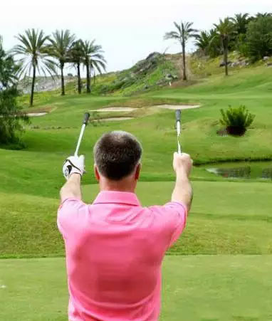 做好站姿,双脚、胯部与双肩都平行于目标线时,身体瞄向目标是左侧几码处。每个人视觉不同,则瞄向目标左侧的距离也不同,了解身体瞄向目标左侧理论和具体标准,这是影响铁杆击球的要点所在。