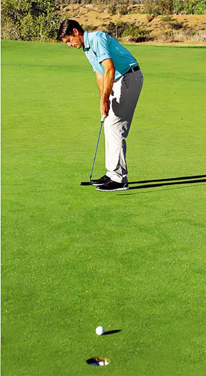 如何推击固然重要,而如何感知推击对于成功来说同样至关重要。如果你感觉自己的推击比实际更短或更长,你推击进洞的机会将大打折扣。