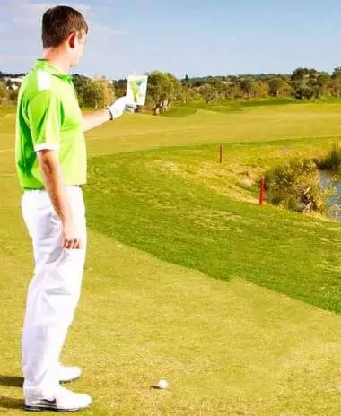 在阅读码数本时,要对果岭旁的沙坑以及果岭周围的下坡非常小心,尤其是与果岭同侧的障碍,都要尽量避开,这些都是挑战短杆技术的关键点。