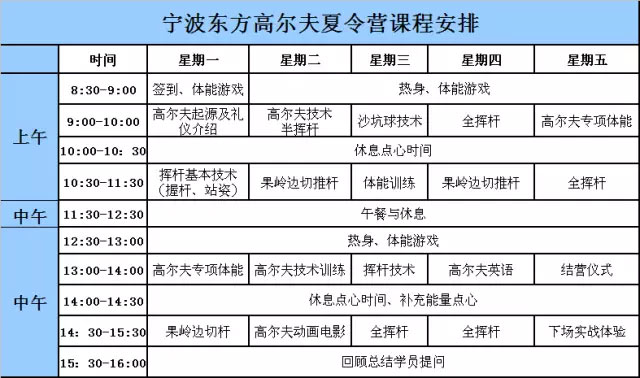 宁波东方高尔夫夏令营面向8-16岁青少年招生;让孩子们提高高尔夫技术的同时,更培养他们独立、自信的生活能力及自我约束能力。