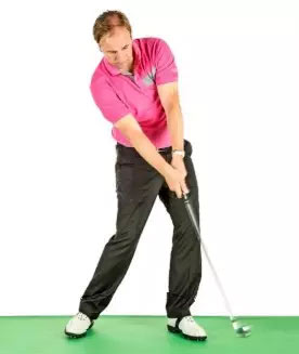 挥杆过程中身体重心的转移与人体扔东西时身体的本能反应是一样的。尝试扔一支旧球杆或足球,体会身体重心有效的转移到身体前侧的感觉。