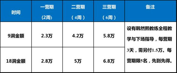 注:每两星期为一个营期。可以按一星期为单位随时入营,入营不满一星期者仍按一星期收费。