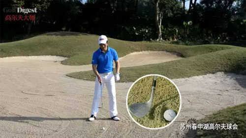 面对果岭边沙坑球,业余球友最常见的错误有两种: