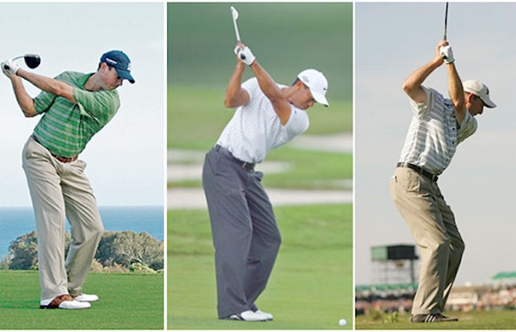 适当的下半身动作可以对距离、速度和精准性进行控制。在上杆和下杆过程中,手臂和手部始终要保持一致的运动节奏。而整个右腿则是关键 (对于左手球员来说,则是左腿),从脚踝关节开始,直至臀部,不同高度的部位会对不同距离的弹道产生影响。