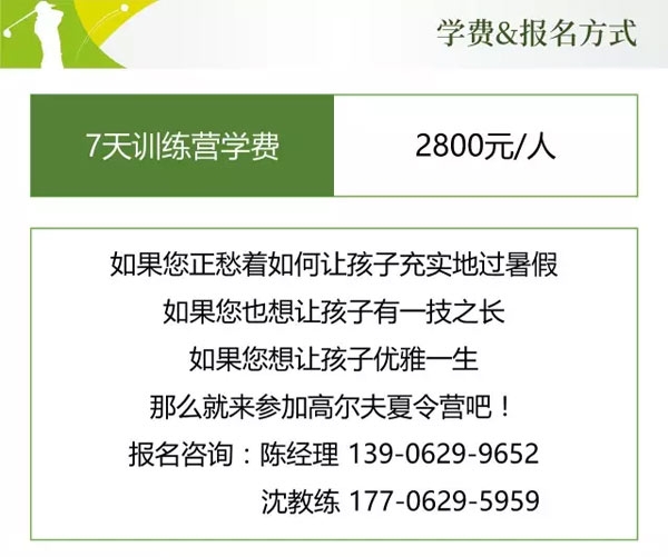 2800元/人 南通瑞德高尔夫学院暑期七天训练营
