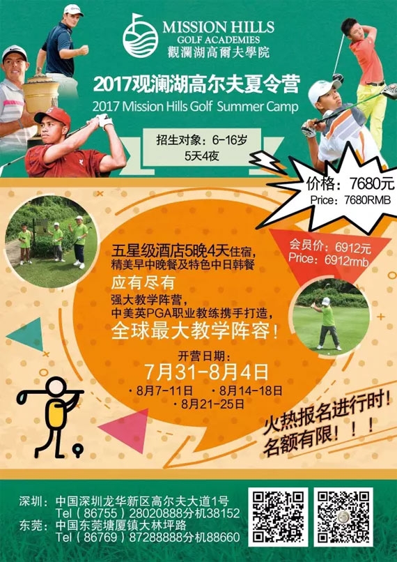 观澜湖高尔夫学院夏令营8月档即将启动!