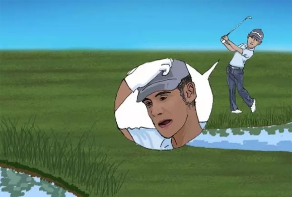 好在规则26-2对此有完美的解决办法:当球员从水障碍区中打出的球遗失或出界后可以有两种选择,一种是罚一杆回原地(水障碍区内)重新打一颗球,如果抛下去的球进入到一个不可打的位置或者球员认为不太好处理的位置(比如球滚到水里),可以选择再罚一杆,把球拿到水障碍区外按照水障碍区的规则抛球。第二种选择是球员可以直接罚两杆(一杆罚杆是出界或遗失球,另一杆罚杆是按照水障碍区的规则去处置),然后在水障碍区以外抛球。