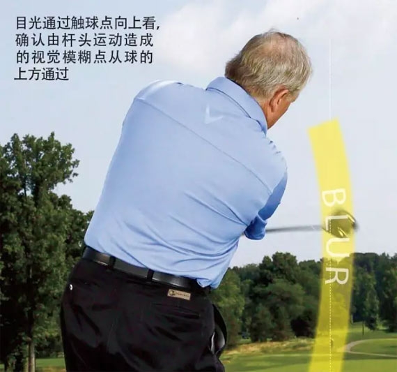 我很喜欢这个方法本身的视觉特质。你需要做对每个动作才能让那个视觉模糊点出现在恰当的位置,因此,用自己的眼睛去观察,这比纠缠于挥杆的位置和角度要有用得多。另外,由于你努力保持挥杆平面的同时是在切实地挥杆,令你更容易感受身体应该怎么做。是的,这个练习是反传统的,但有效。它能帮你摆脱甩杆、上杆过度的困扰,以及向外挥杆的问题——这是个令所有球员苦恼的常见现象。换句话说:想象这个练习是飞镖游戏——扔出杆头、正中靶心。"模糊训练"在40年前就帮我纠正了挥杆。毋庸置疑,它也能帮你。