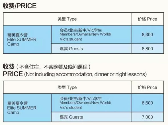 * 报名截至日期 :所有报名及缴费须在开营前一周确定。