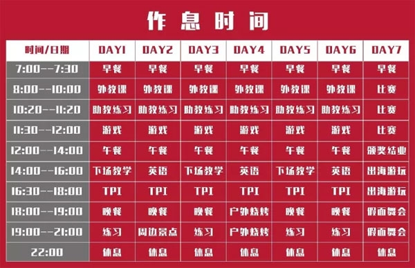 冠军冬令营行程安排