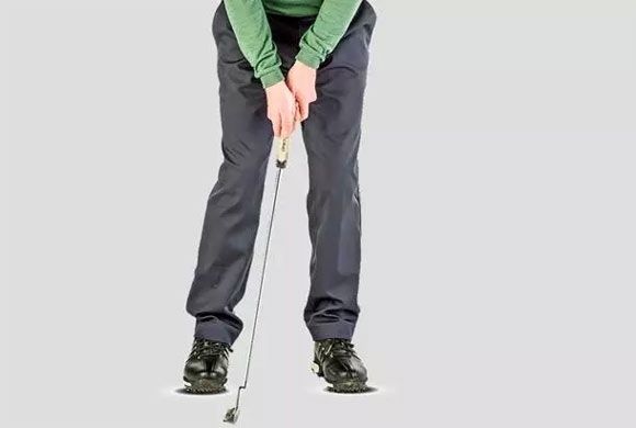 在钟摆式摆杆中,后摆杆的距离与送杆的距离是1:1的关系。而你现在要做的是,将送杆的距离加长至后摆杆距离的两倍,即2:1。在练习时,可以将后脚跟作为后摆杆长度的参照点。