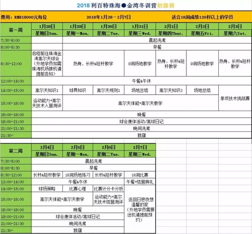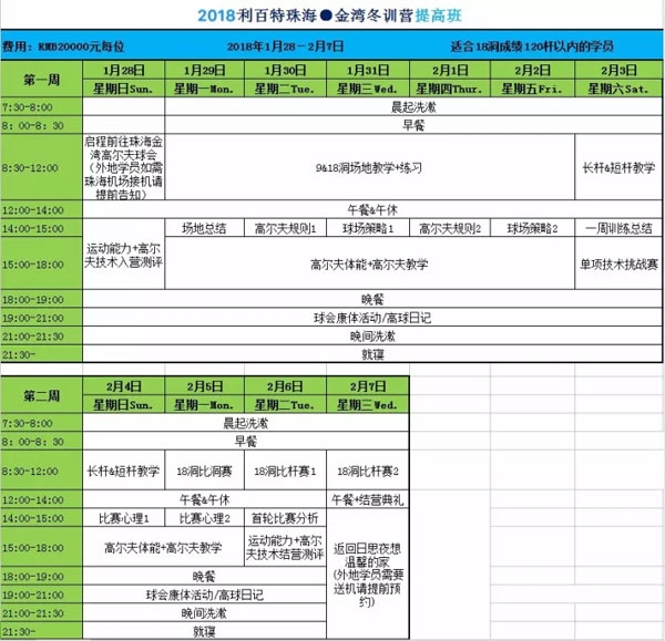 2、训练营期间于金湾高尔夫球会内食宿费用;