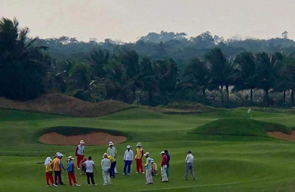 球友A:“24个人在果岭上来回交叉看线、量步,对果岭的建造水平进行检验。”