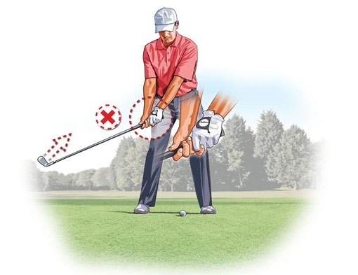 上杆时注意右手位置——要在左手位的上方,这可有效地在顶部位置使杆面保持闭合。