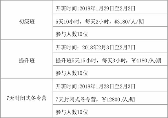 ●峰景会员可享受初级班和提升班九五折优惠