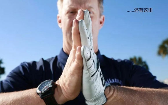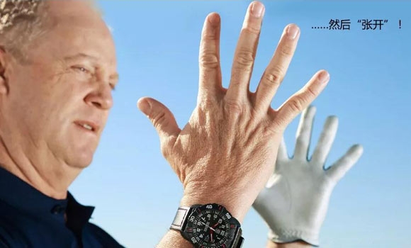 将手指和拇指聚在一起,好像正把一个迷你汉堡包举到嘴边。让左右手对应的手指相互按压,再慢慢向外展开所有手指。缓慢动作,感觉双手、腕部和前臂的肌肉和肌腱在收紧。让两手掌心合并,然后反向移动至外展姿势并最终返回起始位置,全程保持肌肉紧张。每次重复20遍,可以在下场热身前、坐在办公桌旁或者看电视时做。我每天都做大约100遍。打高尔夫球,手指必须强壮。