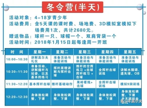 2680元/5天 乐球青少年高尔夫冬令营招募啦!