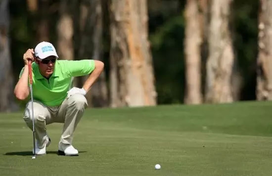 实际上,对于复杂的蛇形 推球线不必苦恼。假如只有一个拐点的曲线推球线的进洞概率是20%的话,那么随着拐点的增加,进洞概率将随之下降。所以遇到复杂推球线时,不要太在意结果,享受推杆即可。