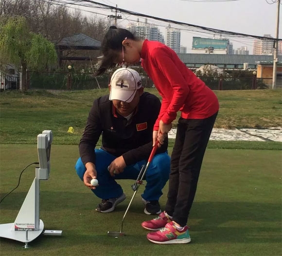 一台SAM PUTTLAB推杆检测仪器,能分析出球员的推杆的所有数据,通过教练的训练方法和技术改进,从而得到改善,提高。