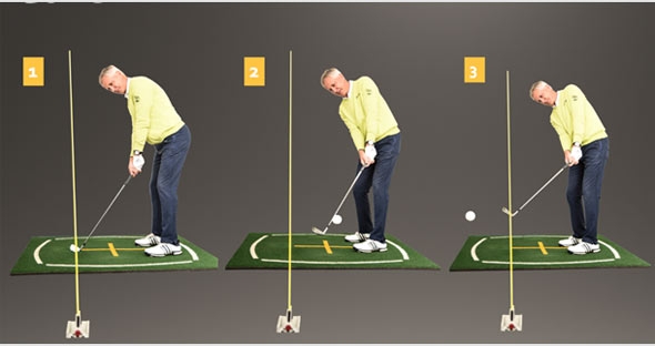 将头5个球往目标线左侧打,也就是说,球需要从立柱的左侧飞过。 在击球过程中,将重心转移、身体旋转等挥杆动作理论统统都忘却。只需要全神贯注地在脑海中想象杆面闭合的画面,通过闭合的杆面将球打向左侧。然后尽你最大努力实现它。球的实际飞行方向会告诉你,强烈的思想意念是多么的重要。