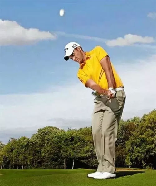 当我试着消除靠内向上的起杆时,花费了大把时间在劈杆上,因为劈杆动作比全挥杆速度慢,移动球杆速度越慢,越能意识到每个动作。