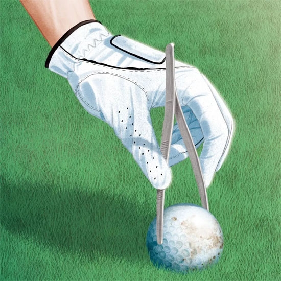 同组的两名球员击出的球落在相距仅几英寸的位置。根据规则22-2,如果一名球员认为另一个球可能会影响她的击球,她可以拿起球但不能擦拭球,除非是在推击果岭上。不久前,我的俱乐部的一位球员输掉了比赛,因为她根据这条规则在球道上拿起球后,在重新放置球前,她的球一直装在自己的口袋里——而她的对手球员成功申诉,称这种行为是擦拭球。如果真是这样,有没有什么恰当、安全的方法来拿起球?
