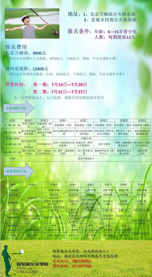 万柳高尔夫俱乐部程军学院青少年夏令营开营了,开营时间第一期:7月14日~7月20日/第二期:7月21日~7月27日!机会难得,让孩子们有个难忘的假期吧~