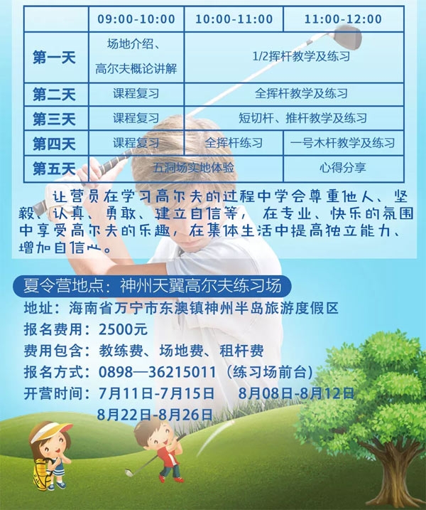 2500元/人 海南神州天翼学院高尔夫夏令营