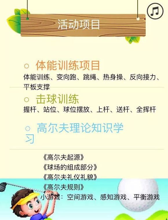 早操+高尔夫理论知识青少年与高尔夫+高尔夫基础挥杆训练 |
