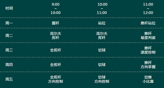 着装要求:穿着宽松舒适的运动衣裤,运动鞋,带帽子。思莱斯提供球杆,饮料以及水果,只需带上大大的笑容
