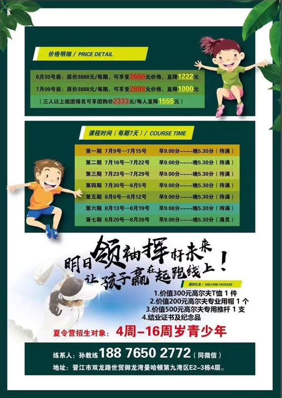 晋江维可森夏令营第一期开营啦!同时在线接受后面的预约报名,维可森给你一个不一样的假期,明日领袖,挥杆未来!