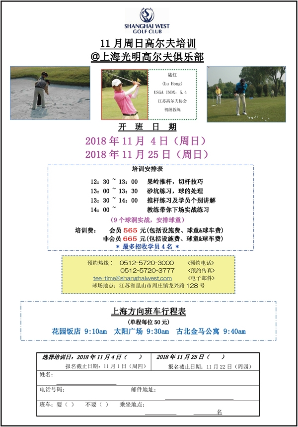 上海光明高尔夫俱乐部周日培训教程安排
